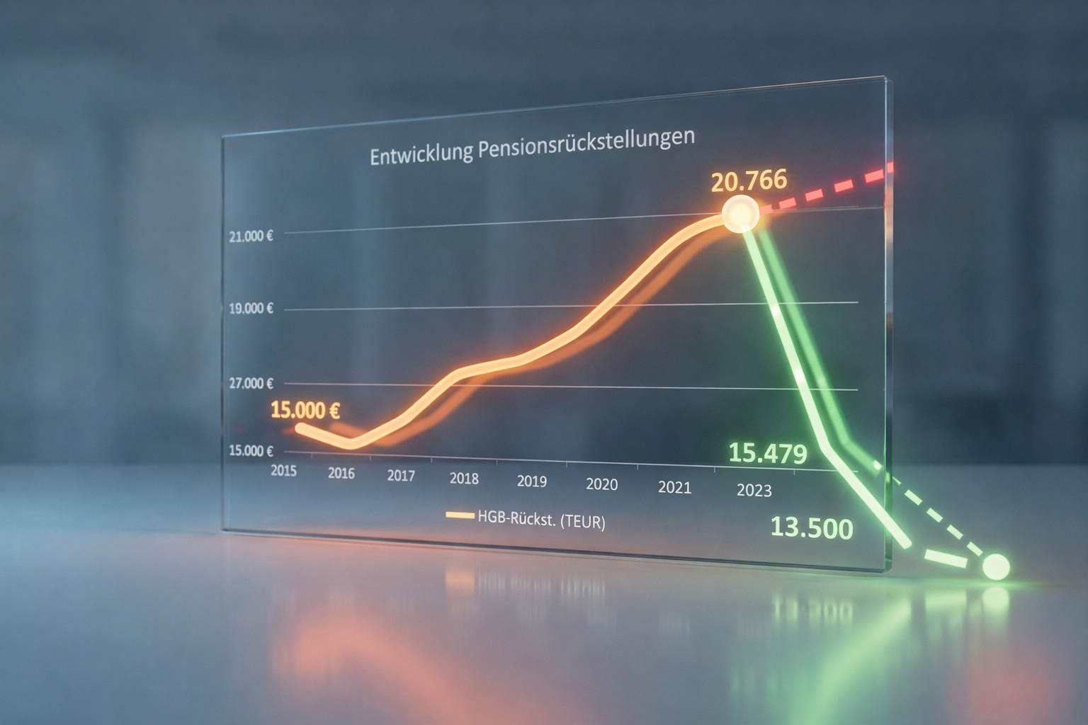 In vielen mittelständischen Unternehmen stellen Pensionsrückstellungen die größte Einzelposition der Passivseite dar. Bereits moderate Veränderungen beim Rechnungszins oder bei Trendannahmen können erhebliche Schwankungen verursachen.